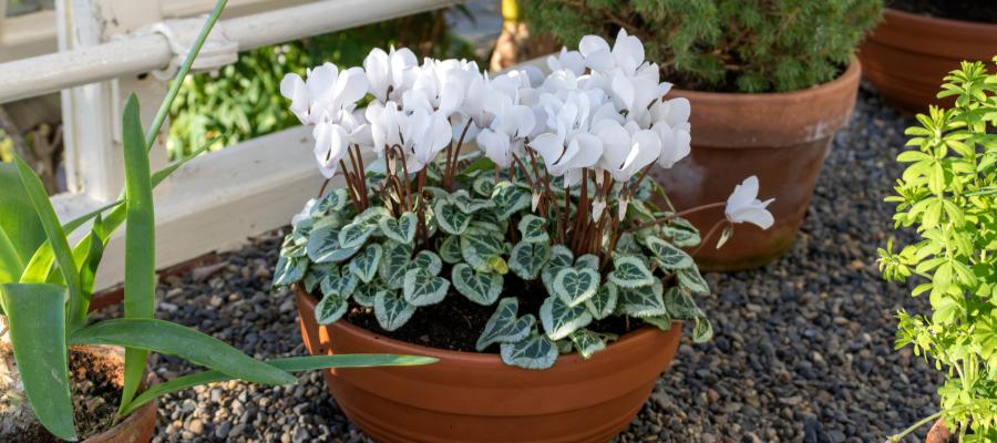 Perfetto per i giardini ombreggiati, il ciclamino fiorisce in autunno e in inverno. Richiede un terreno umido ma ben drenato.